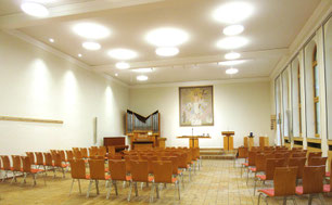 二か国語礼拝では、同じ賛美曲をドイツ語と日本語で歌います。主の祈りや使徒信条は、同時に自分の言語で唱和します。